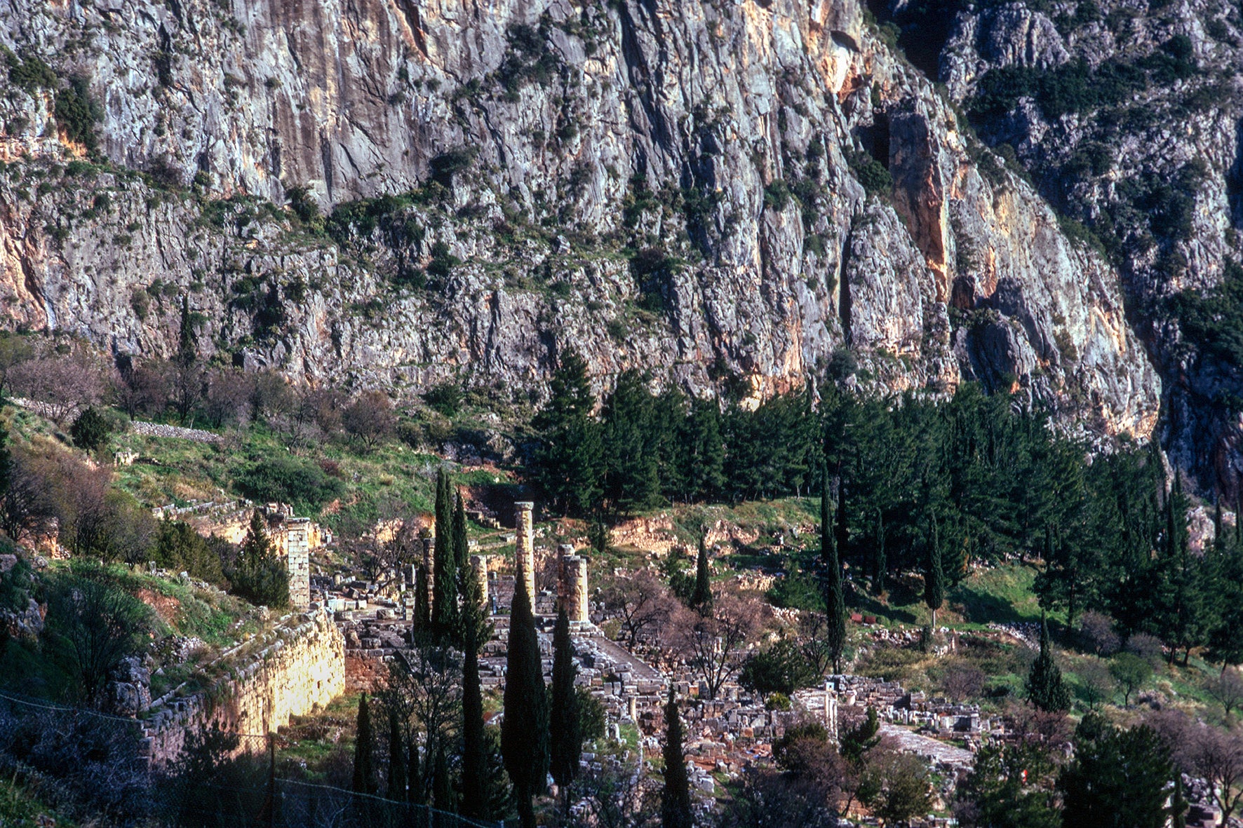 At the foot of Mount Parnassos, in the evocative natural landscape that is formed between two majestic rocks, the Phaedriades, is the pan-Hellenic sanctuary of Delphi and the most famous oracle of ancient Greece. Delphi was the navel of the earth, where, according to mythology, the two eagles sent by Zeus from the ends of the universe to find the center of the world met, and for many centuries it was the spiritual and religious center and symbol of unity of ancient Hellenism. The history of Delphi is lost in the prehistory and in the myths of the ancient Greeks. According to tradition, here originally there was a sanctuary dedicated to the female deity of the Earth, and its guardian was the terrible dragon Python.