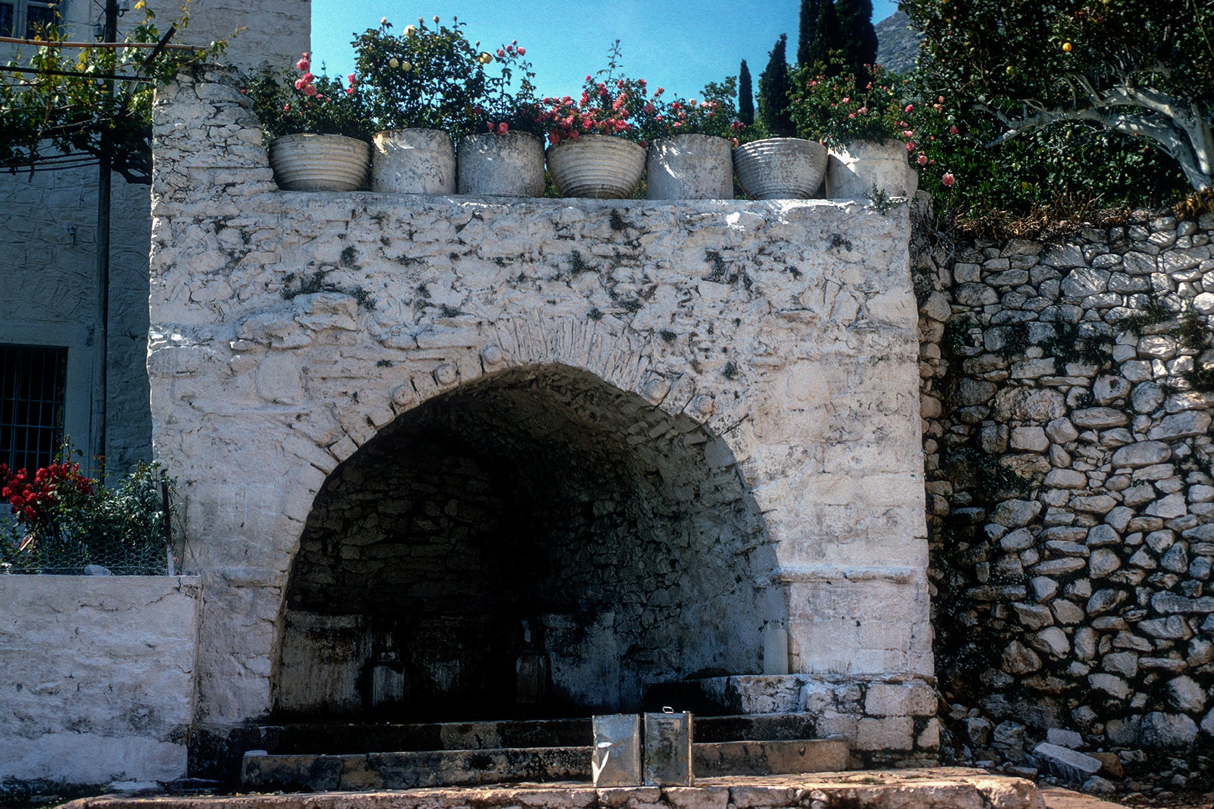 The pots and the fountain in the village of Lagada in Mani