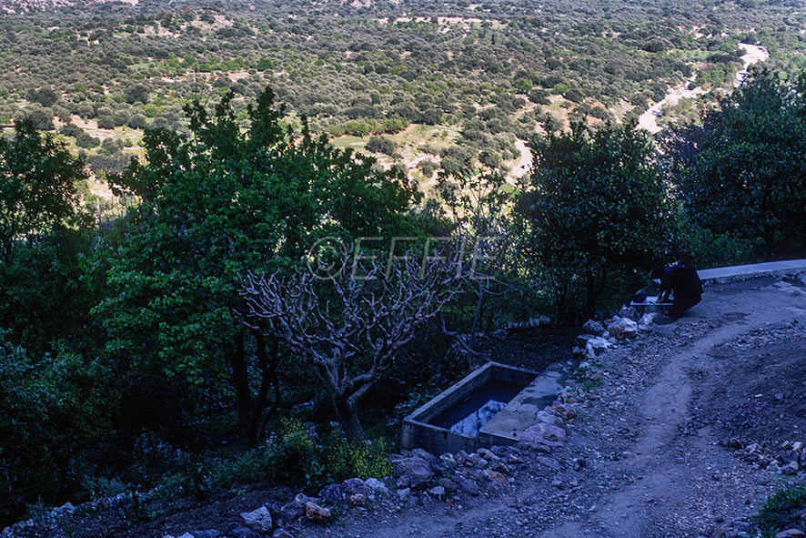 Μια Κρητικιά κάτι πλένει στην άκρη του δρόμου