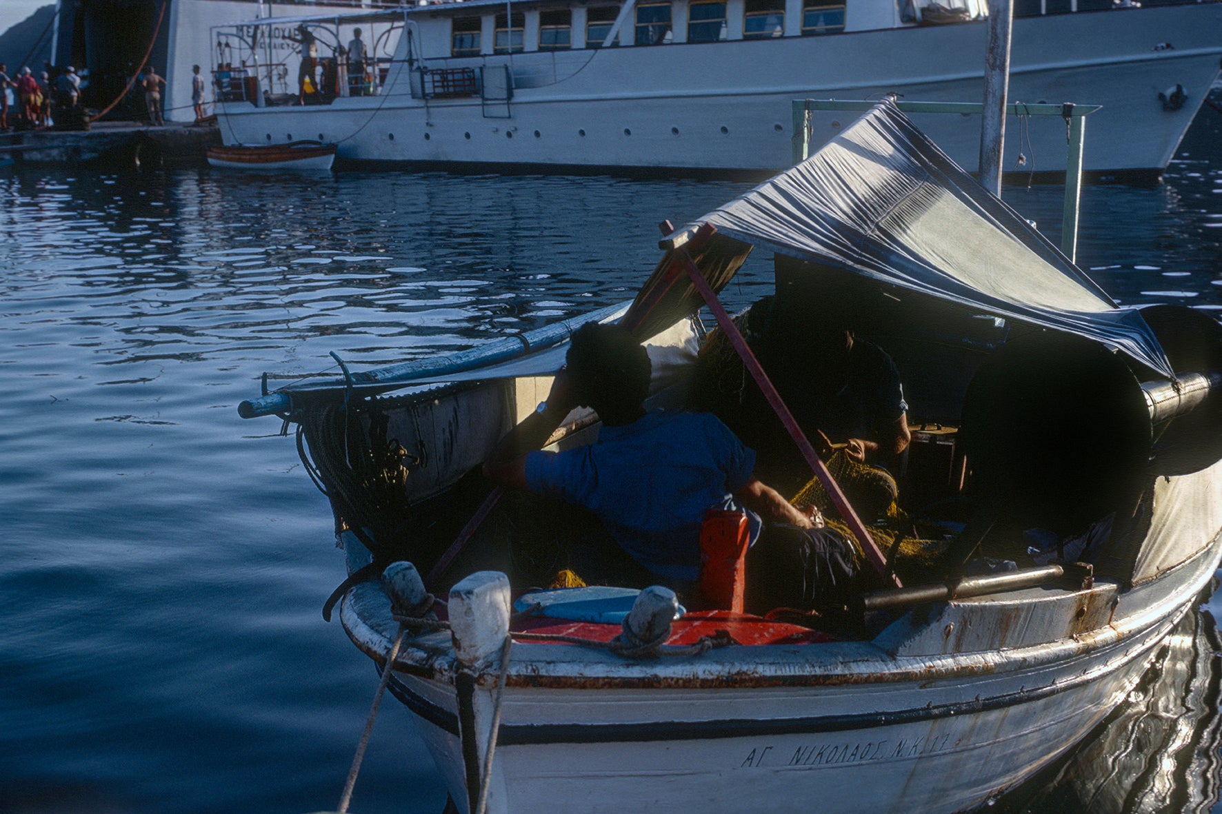 Τα δίχτυα και τα καϊκια στο λιμάνι στους Παξούς