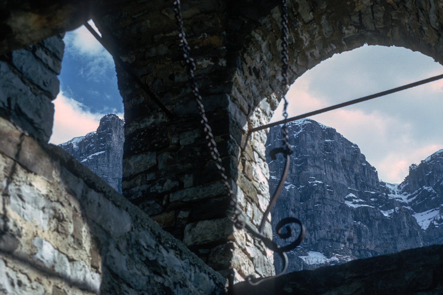 Θέα των βουνών στο Πάπιγκο μέσσα από το καμπαναριό.