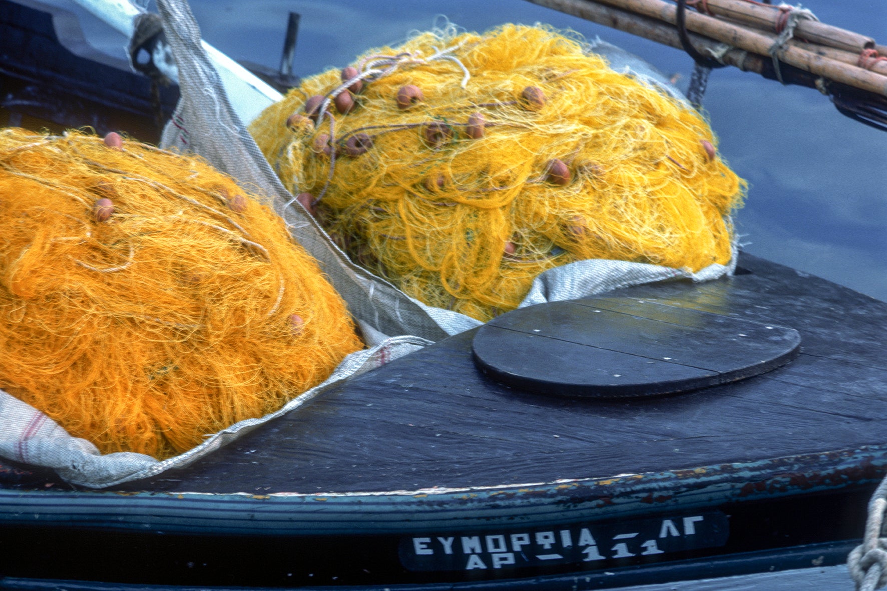 Τα δίχτυα και τα καϊκια στο λιμάνι στους Παξούς