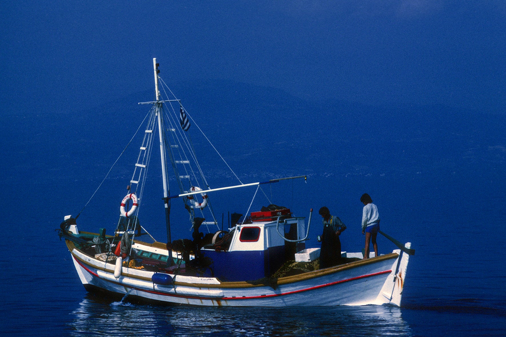 Τα δίχτυα και τα καϊκια στο λιμάνι στους Παξούς