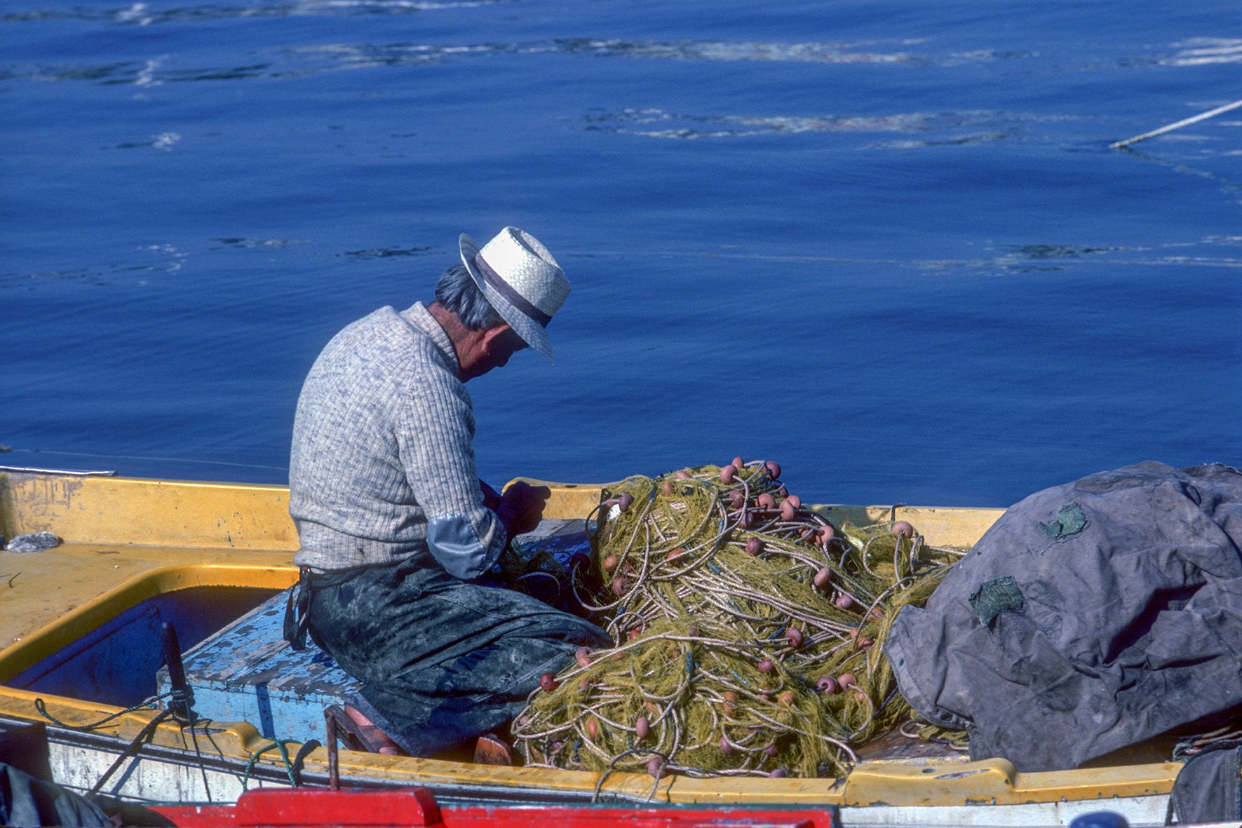 Ο ψαράς ασχολείται με τα δίχτυα του.