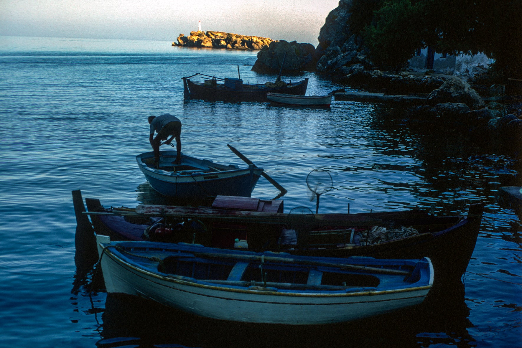 Τα δίχτυα και τα καϊκια στο λιμάνι στους Παξούς