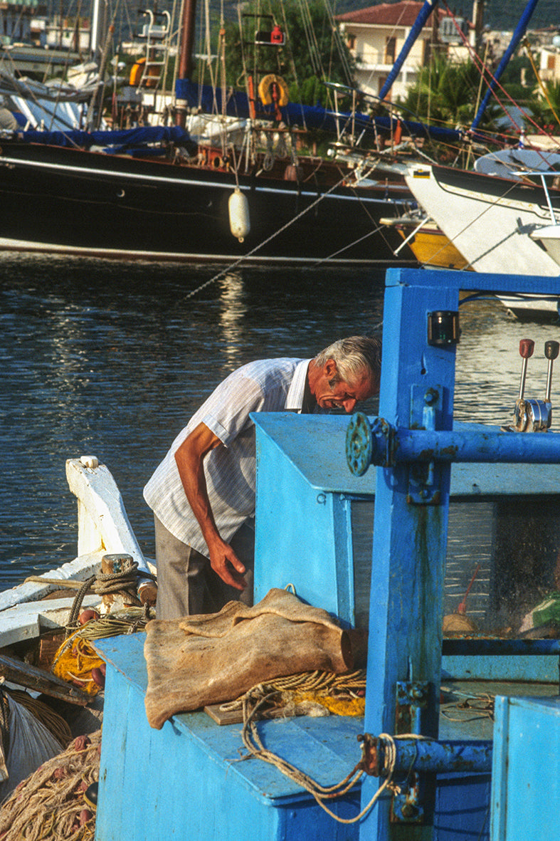 Τα δίχτυα και τα καϊκια στο λιμάνι στους Παξούς
