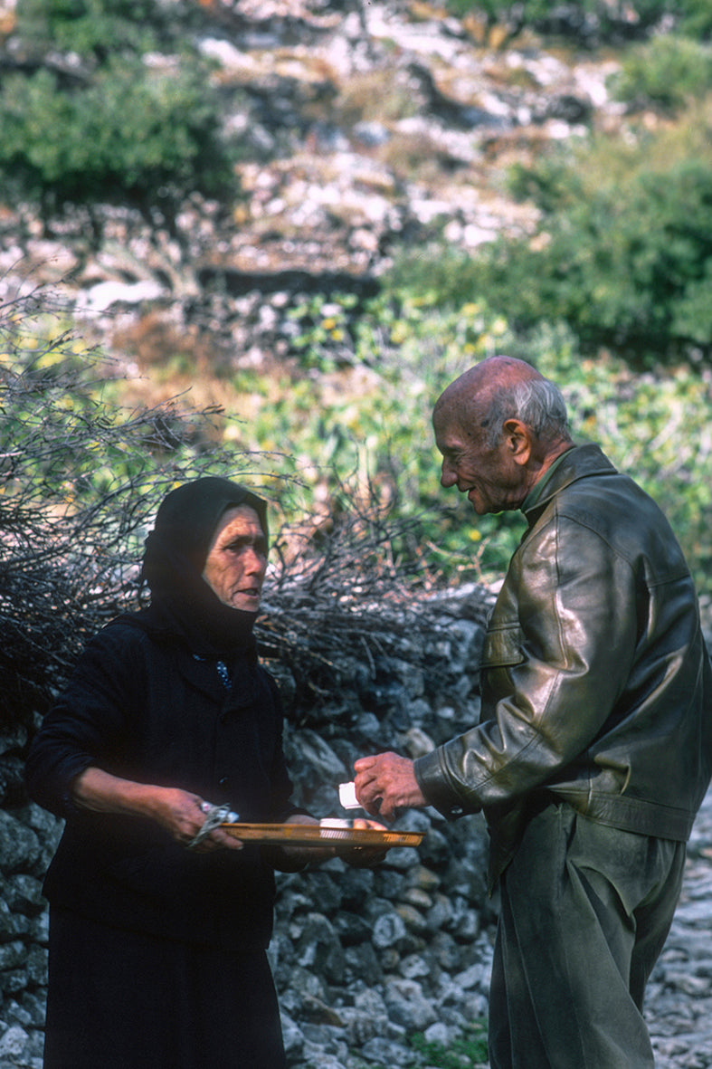 Μία Μανιάτισα κουβεντιάζει και προσφέρει καφέ