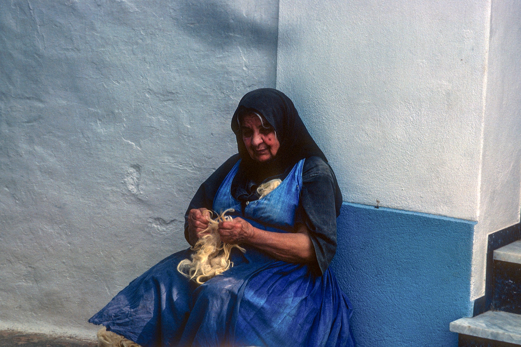 Μία Σκοπελίτισσα έξω από το σπίτι της