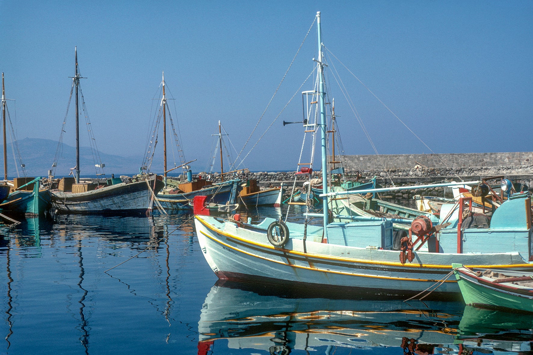 Τα δίχτυα και τα καϊκια στο λιμάνι στους Παξούς