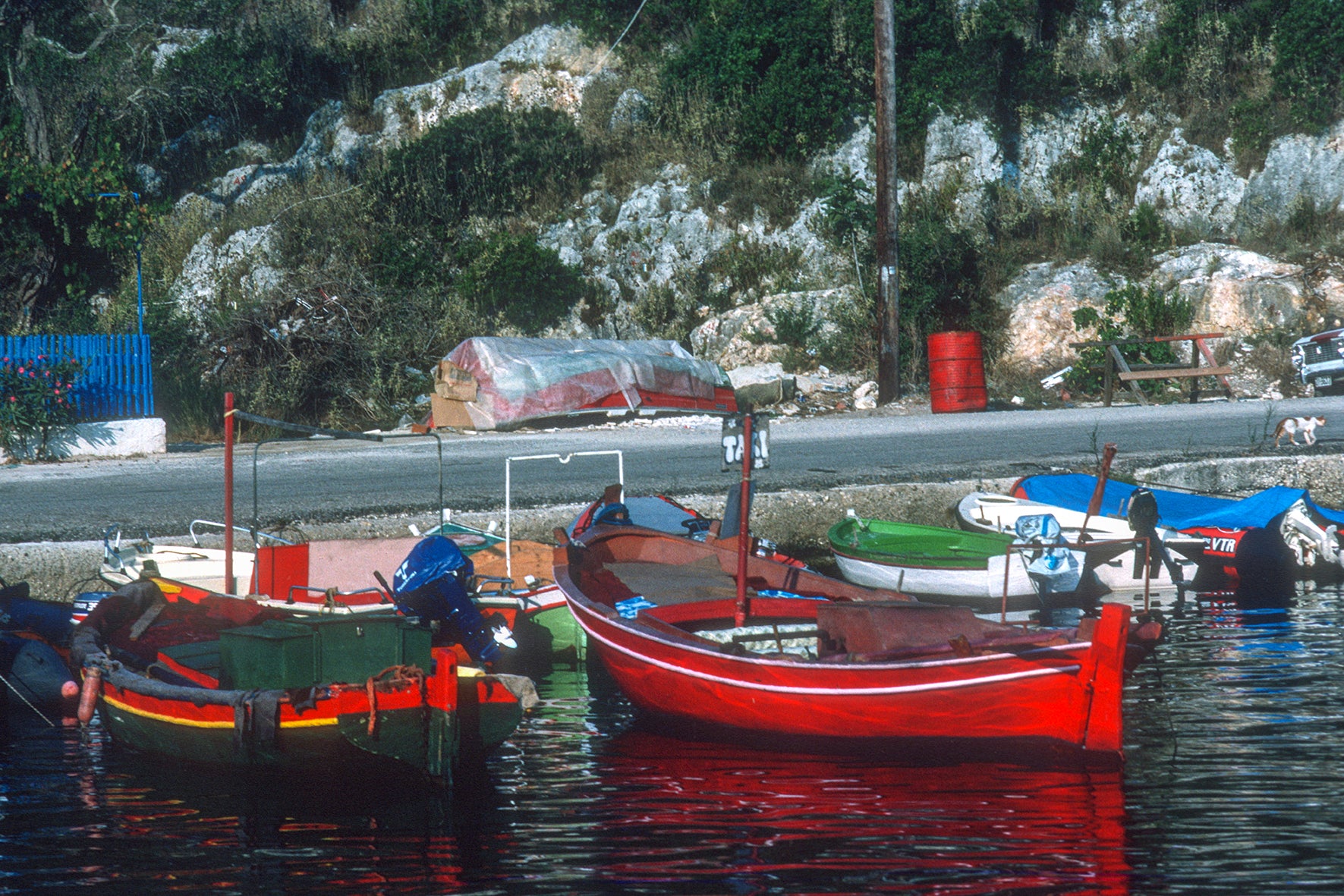 Τα δίχτυα και τα καϊκια στο λιμάνι στους Παξούς