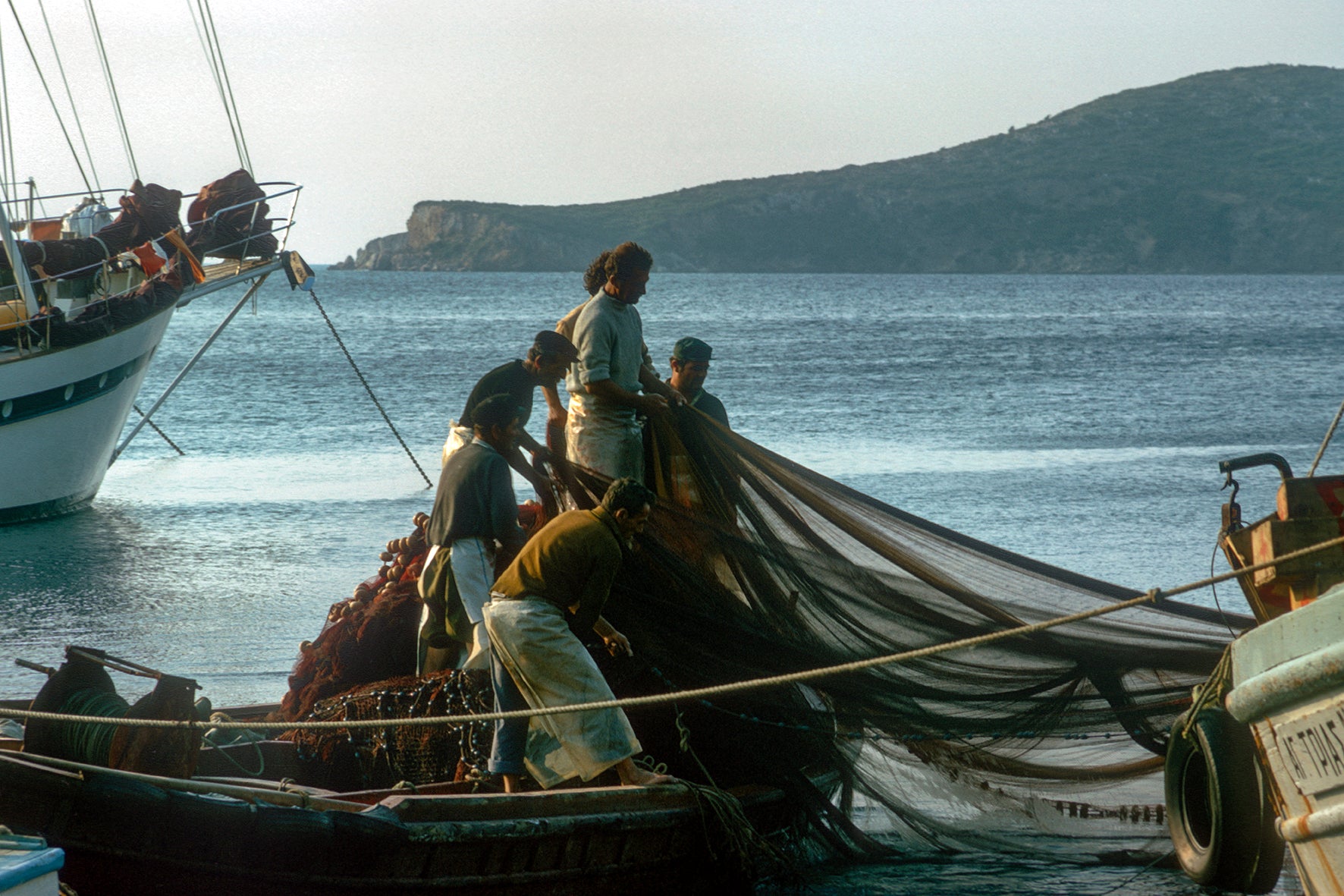 Τα δίχτυα και τα καϊκια στο λιμάνι στους Παξούς