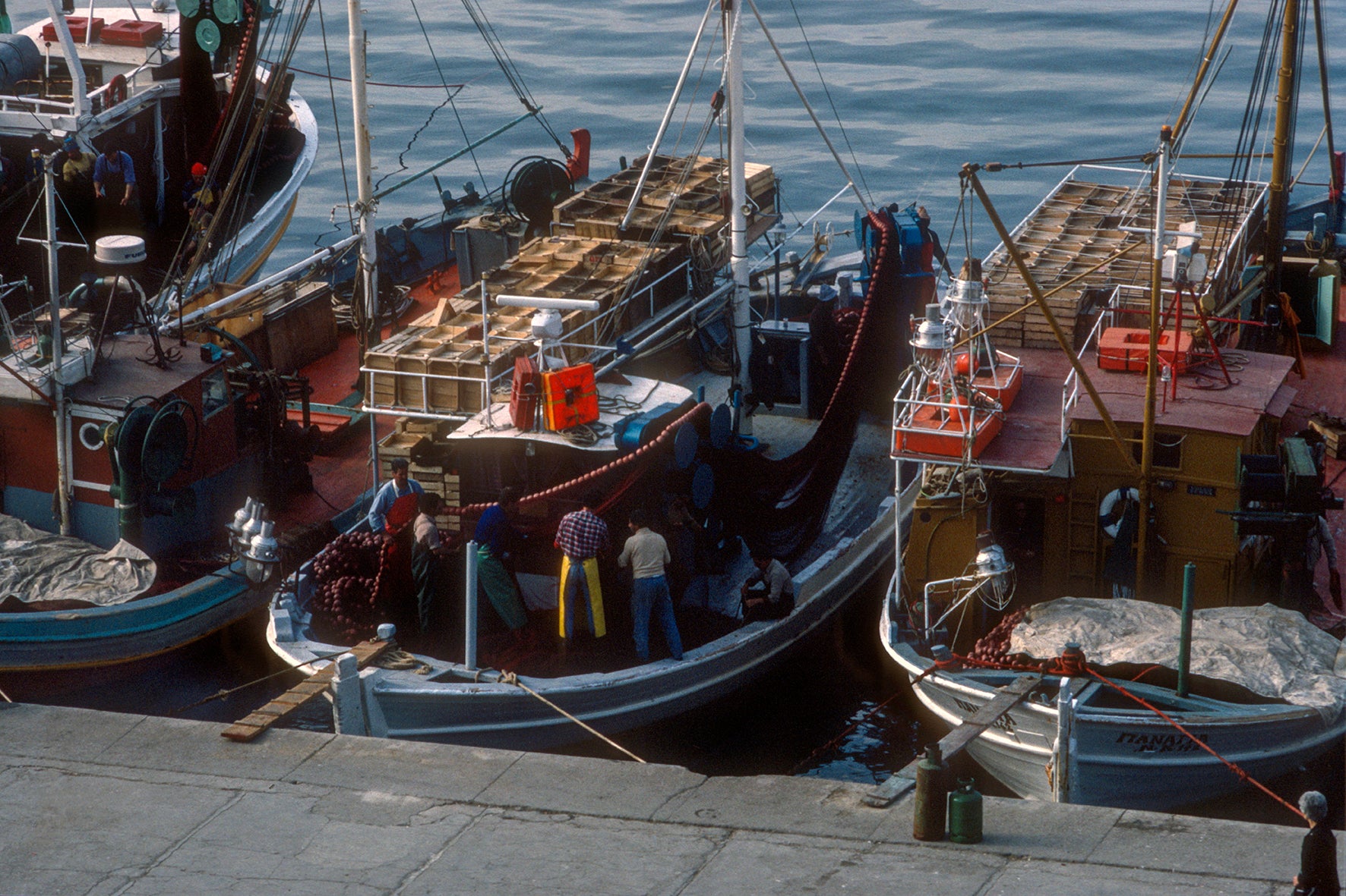 Τα δίχτυα και τα καϊκια στο λιμάνι στους Παξούς