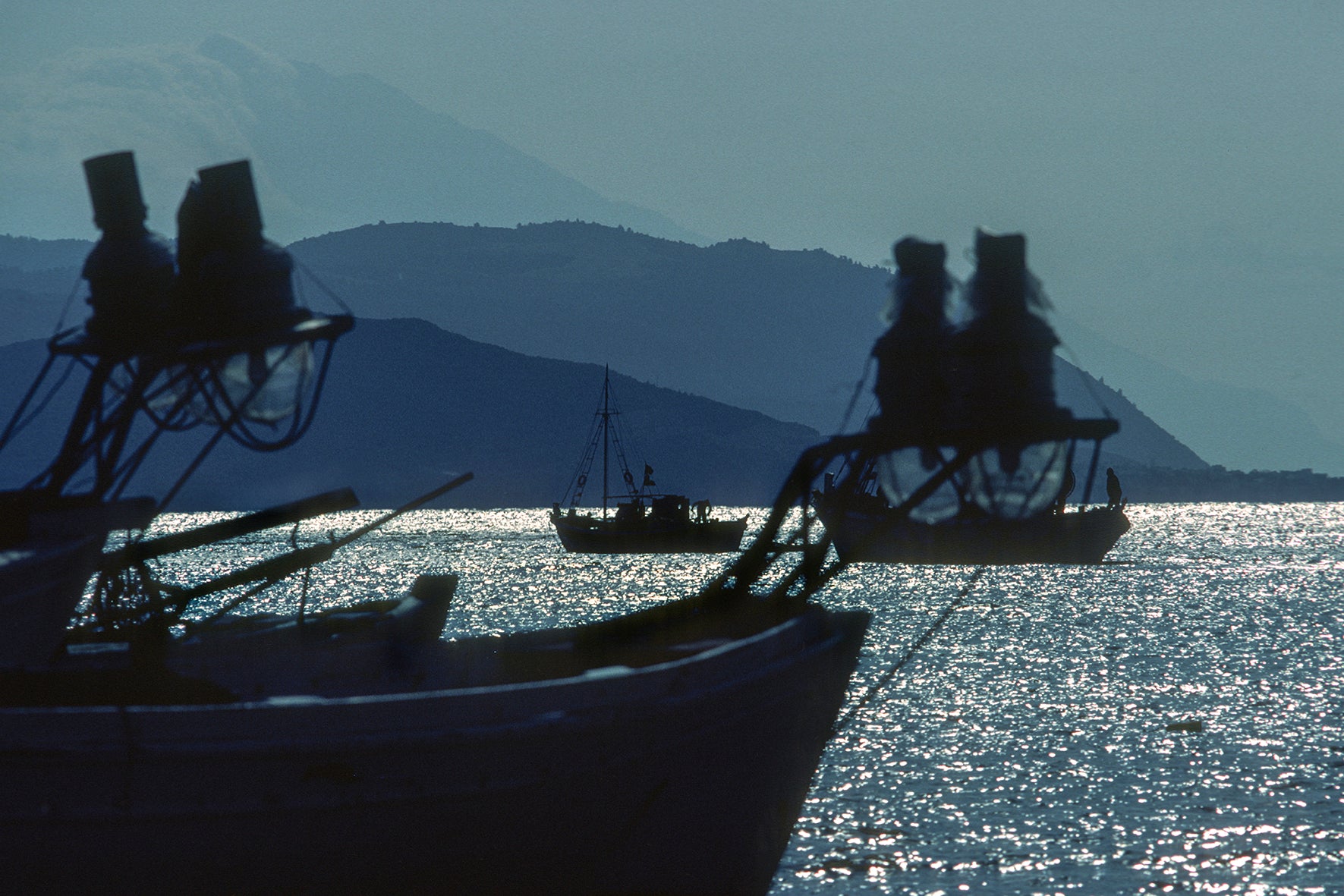 Τα δίχτυα και τα καϊκια στο λιμάνι στους Παξούς