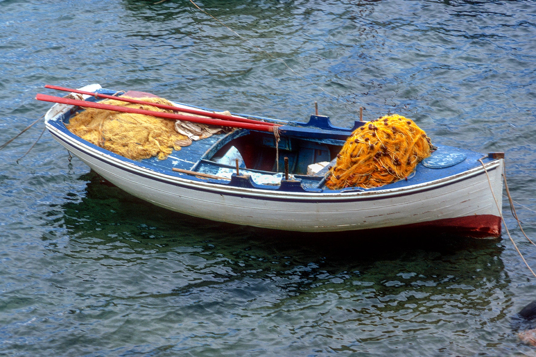 Τα δίχτυα και τα καϊκια στο λιμάνι στους Παξούς